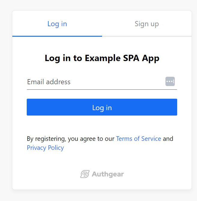 `login`: The function is called by the **Login** button previously defined on the HTML page. It performs the login action by calling `authgearClient.startAuthentication` Authgear’s function. It redirects the user to the Auhthgear login page. After the user logs in successfully, they will be redirected back to the same page we set in `redirectURI`. Run the project and click the **Login** button. You should be taken to the **Authgear Login Page** configured for your application.