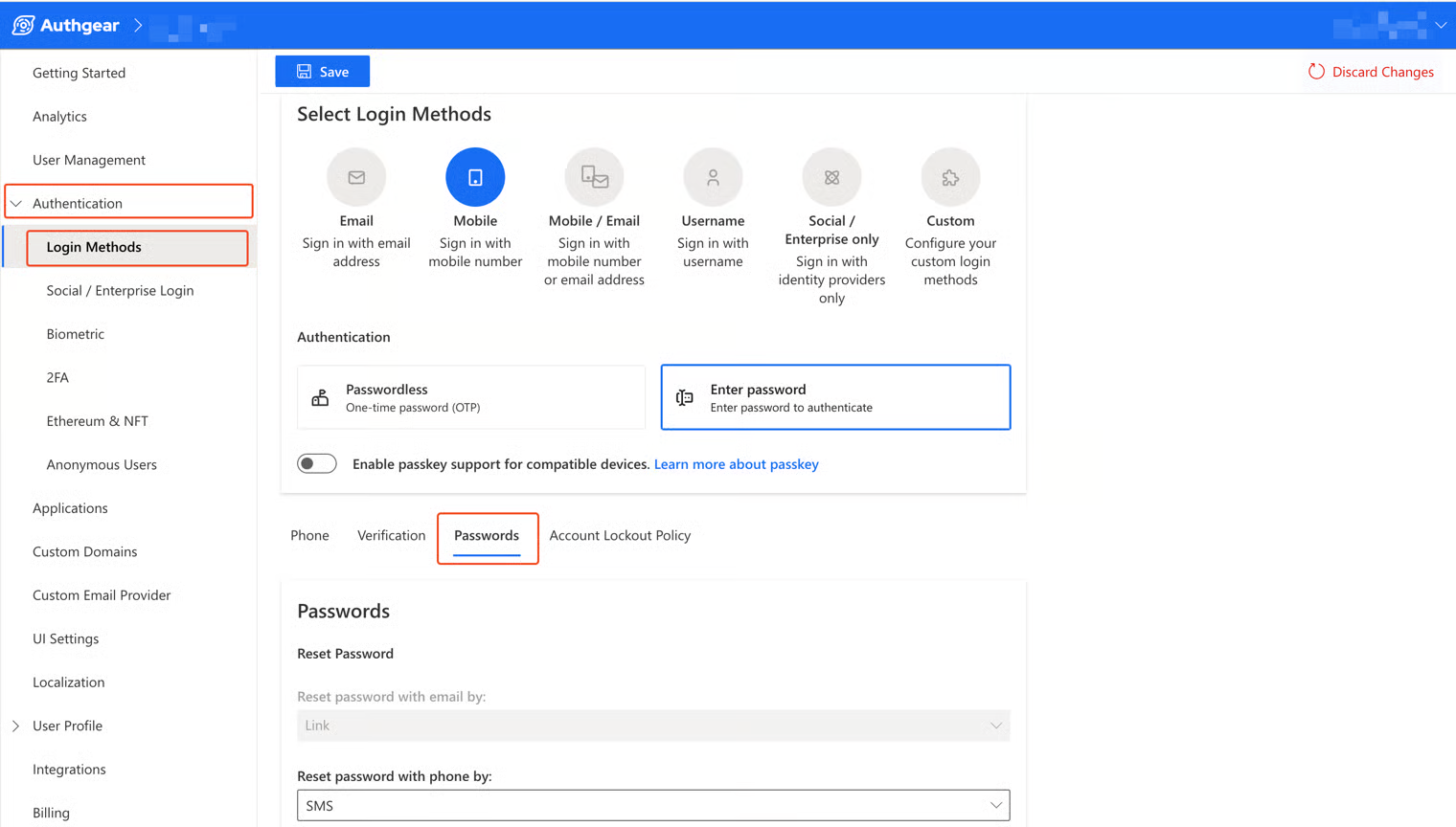 Navigate to Authentication > Login Methods.