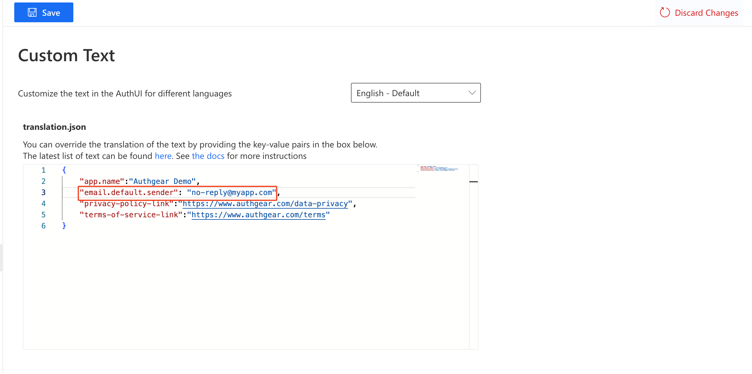 <figure><img src="https://2638622528-files.gitbook.io/~/files/v0/b/gitbook-x-prod.appspot.com/o/spaces%2F-MAjXpMovvVxeIY33s_K%2Fuploads%2Fgit-blob-cdaa40f93de53db2a4c28679d60580e26f9bfd11%2Fauthgear-default-sender-fix1.png?alt=media" alt=""><figcaption></figcaption></figure>