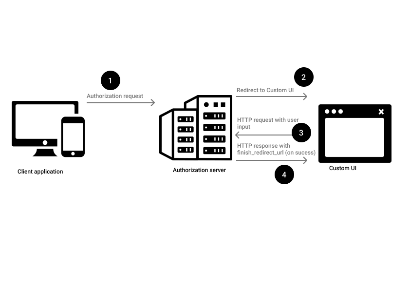 In your custom UI, implement the code that interacts with the Authentication Flow API (using HTTP requests) as demonstrated in **step 3** of the above figure.