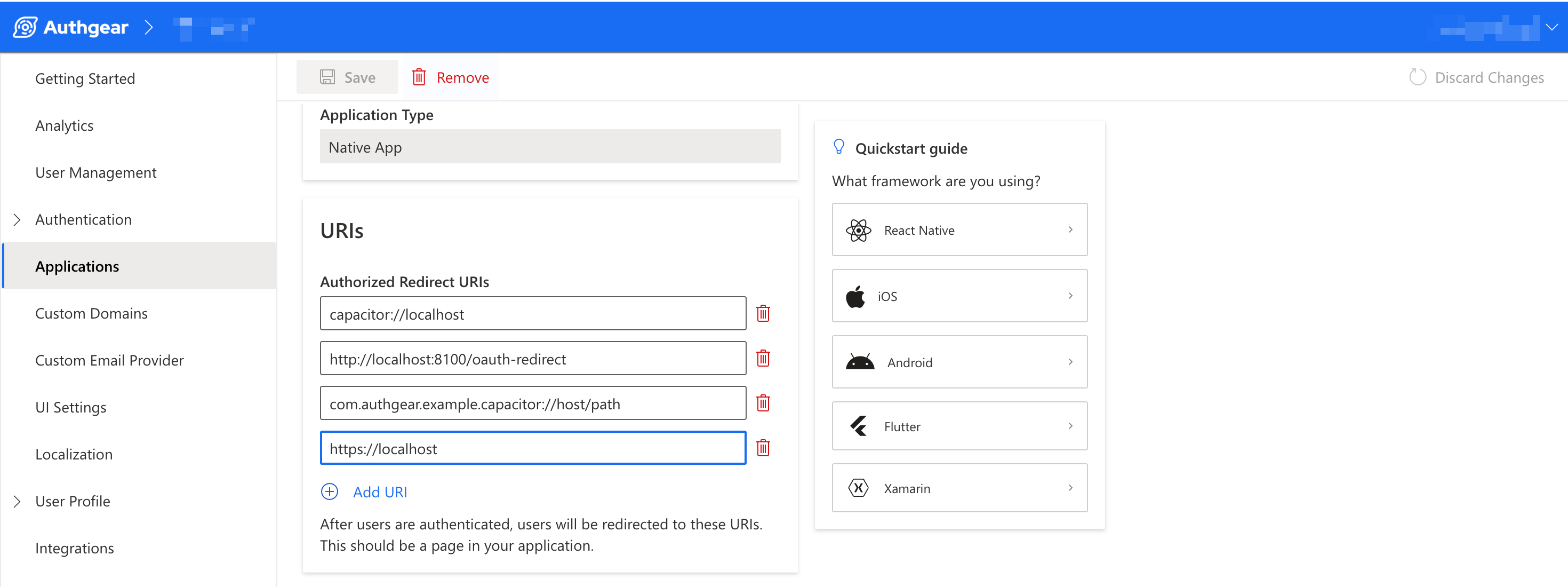 In this step, you'll set up authorized redirect URIs for your application. An authorized redirect URI should be a URI pointing to a page on your Ionic app where you want to redirect users at the end of the authorization flow.