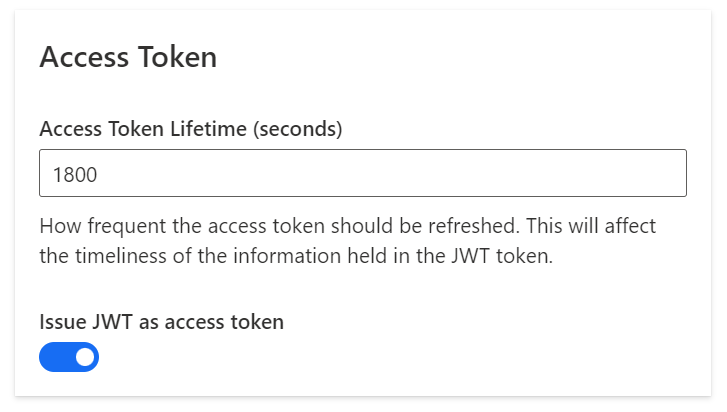 Also, enable **Issue JWT as an access token** option under the **Access Token** section of the app configuration: