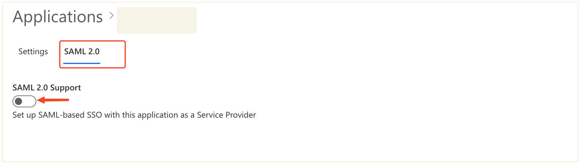 Click on the SAML 2.0 tab then toggle **SAML 2.0 Support** switch to enable SAML 2.0.