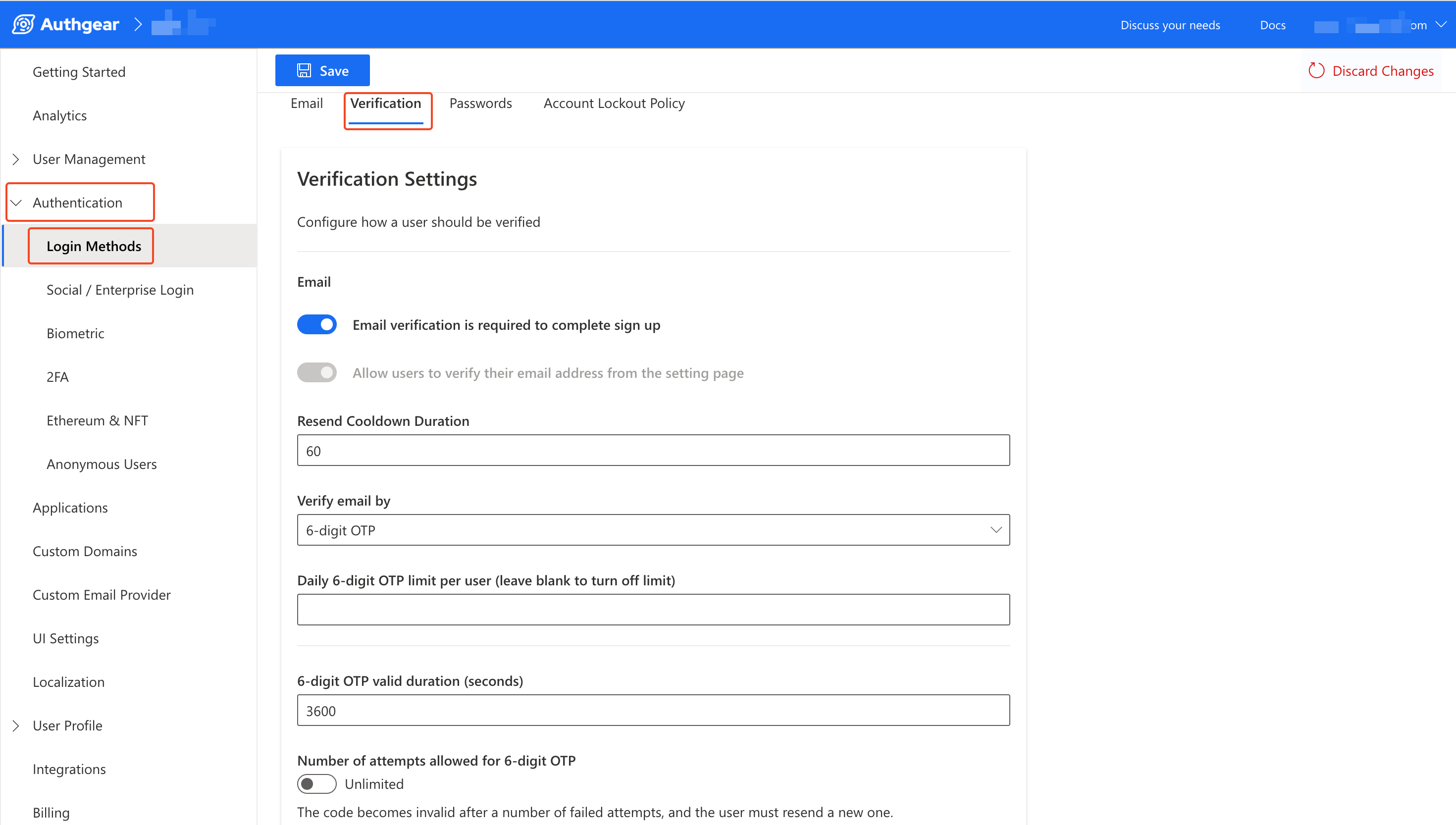 <figure><img src="https://2638622528-files.gitbook.io/~/files/v0/b/gitbook-x-prod.appspot.com/o/spaces%2F-MAjXpMovvVxeIY33s_K%2Fuploads%2Fgit-blob-352510a38e1657903c41665e330f997d5666c2b6%2Fauthgear-verfifcation-settings-corrected.png?alt=media" alt=""><figcaption></figcaption></figure>